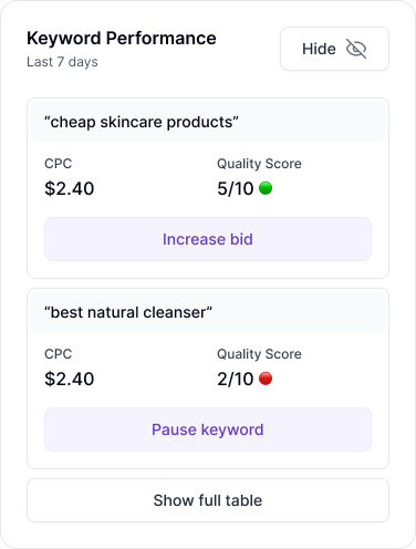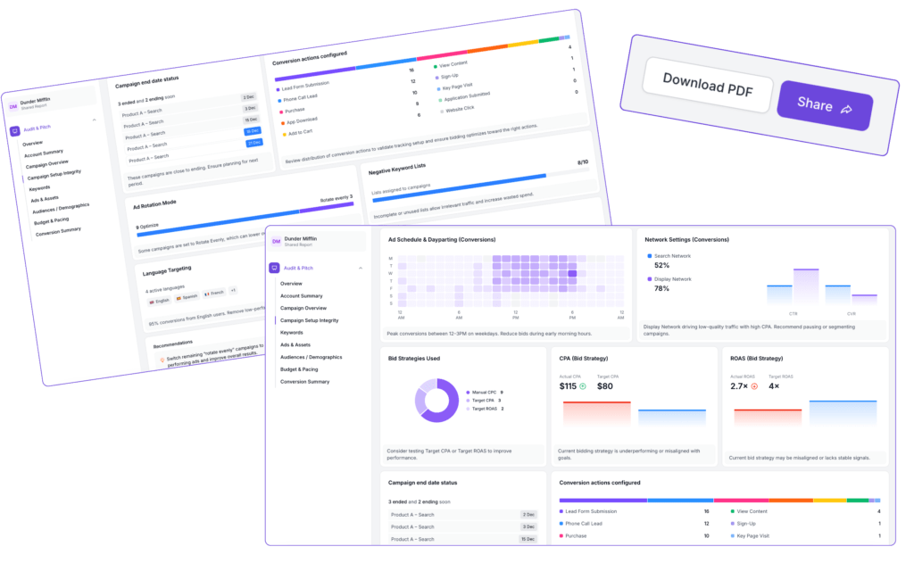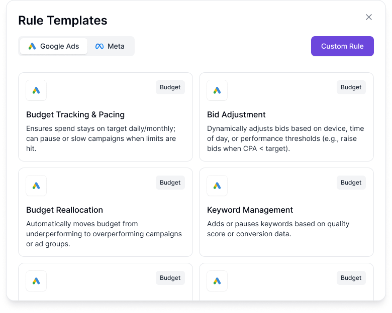 Diagnose issues, risks, and missed opportunities across Google and Meta in minutes.
