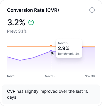 Instead of reacting to surface-level metrics, teams get clarity on trends, impact, and priorities across their marketing performance.