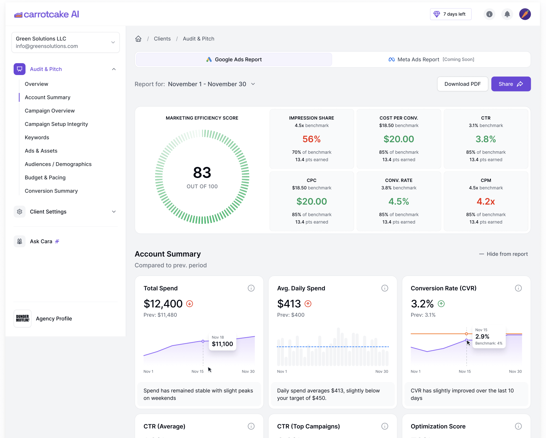 carrotcake helps paid media agencies and performance-led marketers turn Google and Meta data into clear audits and confident strategy decisions.