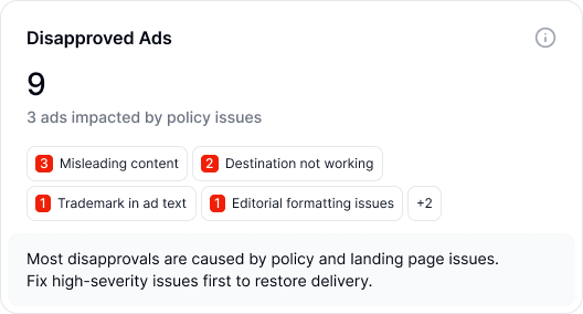 Instead of surface-level metrics, the audit evaluates structure, setup, and performance signals to explain why results look the way they do.