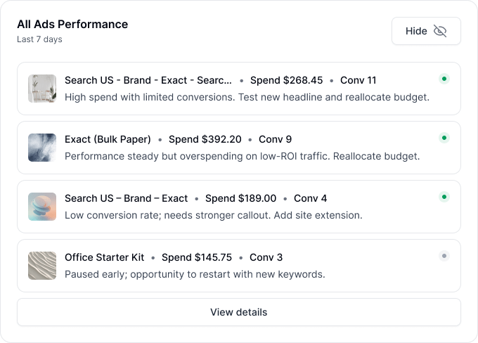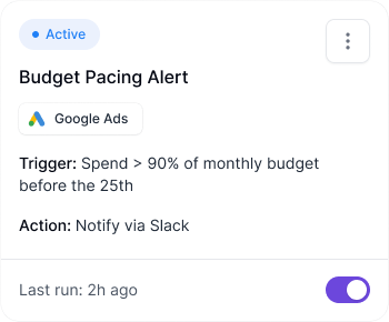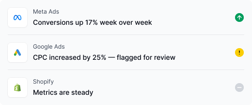 carrotcake Strategy continuously analyzes paid performance across Google and Meta to surface patterns, changes, and priorities, helping teams make confident decisions.